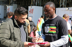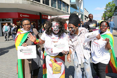 ZHRO director of Marketing, Mable Kayiya, who devised the Zombie theme, as well as the #Take2Zimbabwe concept, said there was need to levy continued pressure on the Zanu PF Regime ahead of the 2018 polls. Following on from the success in London of the 18th April 2017 on the Anniversary of Zimbabwe's [so called] Independence, the #Take2Zimbabwe 'campaign' continues to distribute informative flyers and collect petition signatures from the passing public - in order to highlight the major electoral problems concerning Zimbabwe and the quest for the Diaspora Vote.